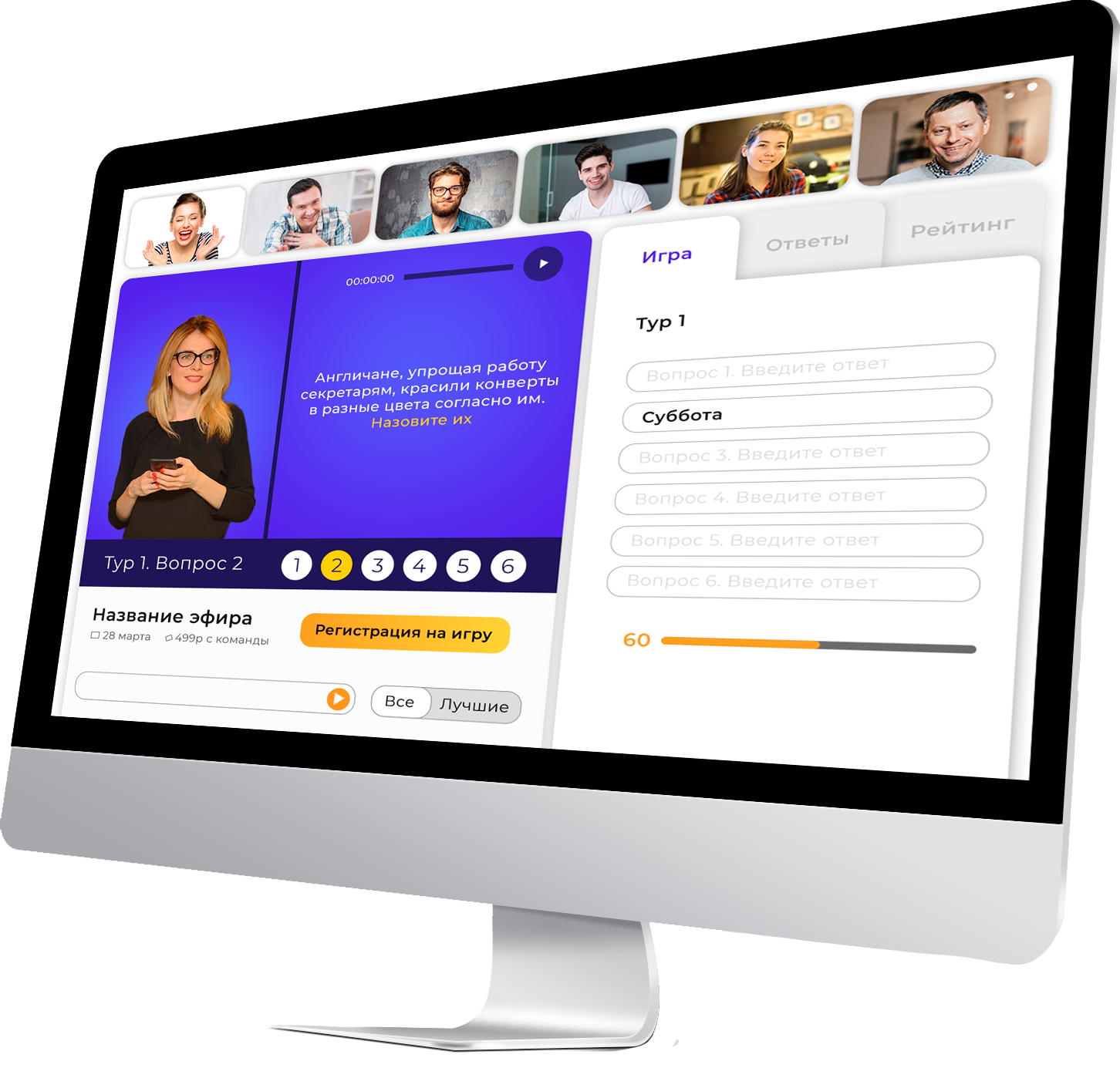 - специальная платформа на которой идет игра - ответы на платформе моментально проверяются, и автоматически подсчитываются баллы (все максимально прозрачно) - техподдержка - ведущий - редакторы вопросов