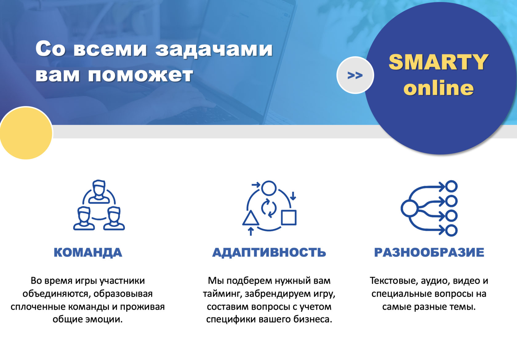 Мы придумали и разработали азартную и атмосферную игру онлайн. Путем чередования вопросов разной сложности и концепции - нам удалось максимально вовлечь игроков в наш квиз.