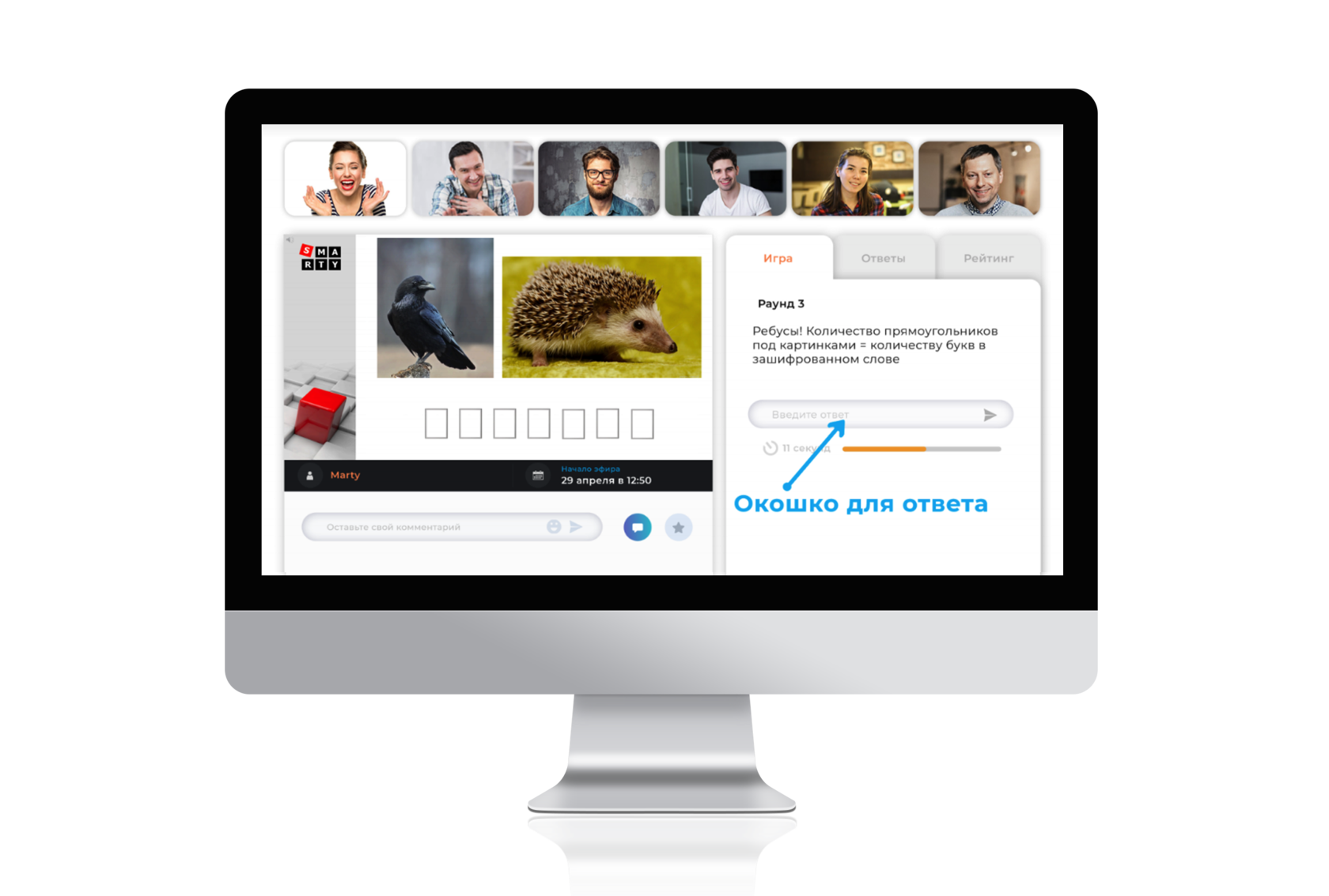 Мы выводим слайд на экран и у вас есть 20 секунд, чтобы отгадать слово, которое мы зашифровали.